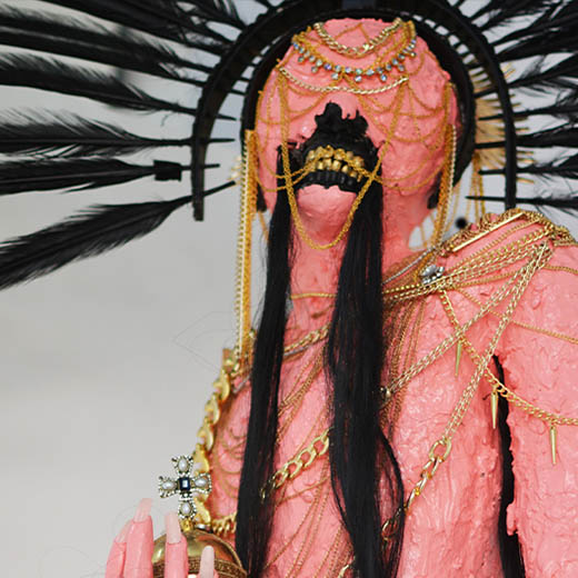 resin, epoxy gel, synthetic hair, acrylic paint,